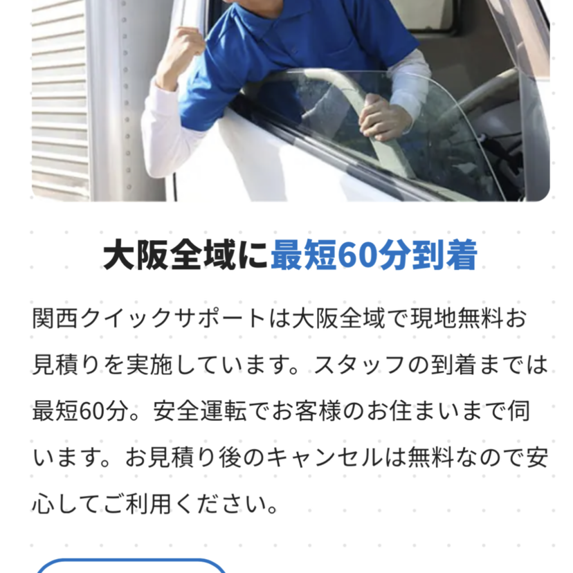 関西クイックサポートには元気で若いスタッフが多く、仕事にかける思いは誰にも負けません。不用品を処分したいときに「そうだ、関西クイックサポートに来てもらおう」と当社を選んでいただけるように、マナーやスキルアップに磨きをかけて、大阪のお客様からのご依頼を心よりお待ちしております。
